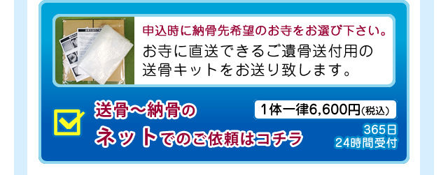 65cm以上または25kg以上のサイズのご遺体も専用の火葬設備で別途対応が可能ですので、お電話にてご相談ください。